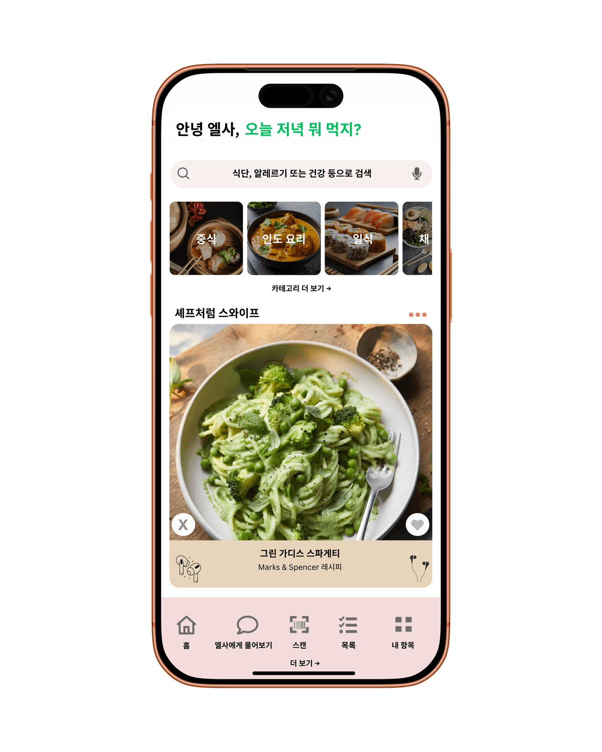 ElsaCookz는 레시피, 식재료, 그리고 식사 결정을 하나의 간편하고 매끄러운 경험으로 연결합니다.